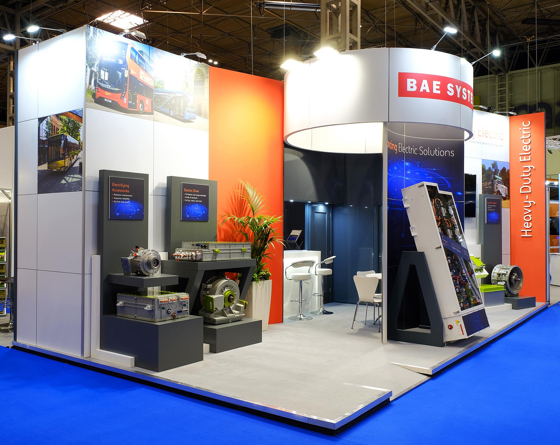 Utilising the same design and components at all 3 of BAE’s exhibition commitments kept its appearance clean, consistent and easily identifiable throughout UK and Europe, whilst making best use of the budget available.