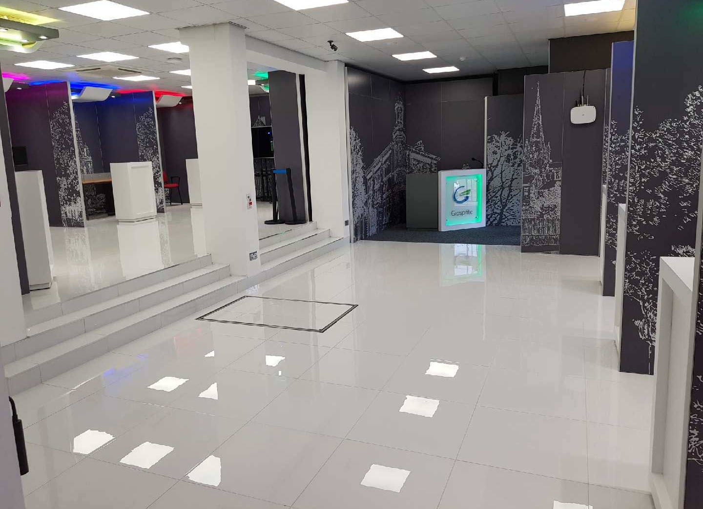 Icon was tasked to provide the most innovative modular display system, that could be reconfigured into a number of layouts to provide the backdrop for the Giosprite ground-breaking Smart City technology and used both in head office reception and also at external venues.