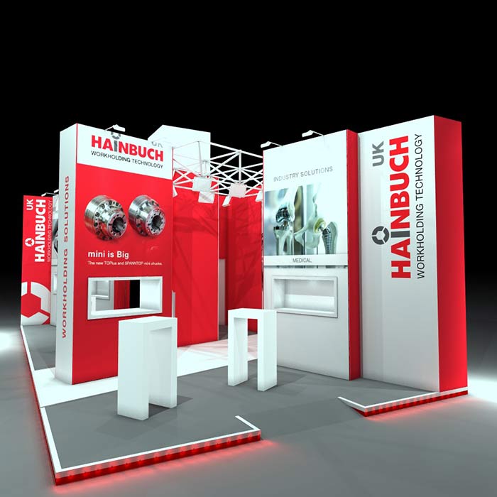 Having secured a larger stand space at the MACH show, the Hainbuch team wanted to ensure it utilised the extra space well to maximise the company’s brand image. Icon’s knowledge and extensive experience exhibiting at MACH allowed the team to create a stunning stand to meet the brief and show objectives.