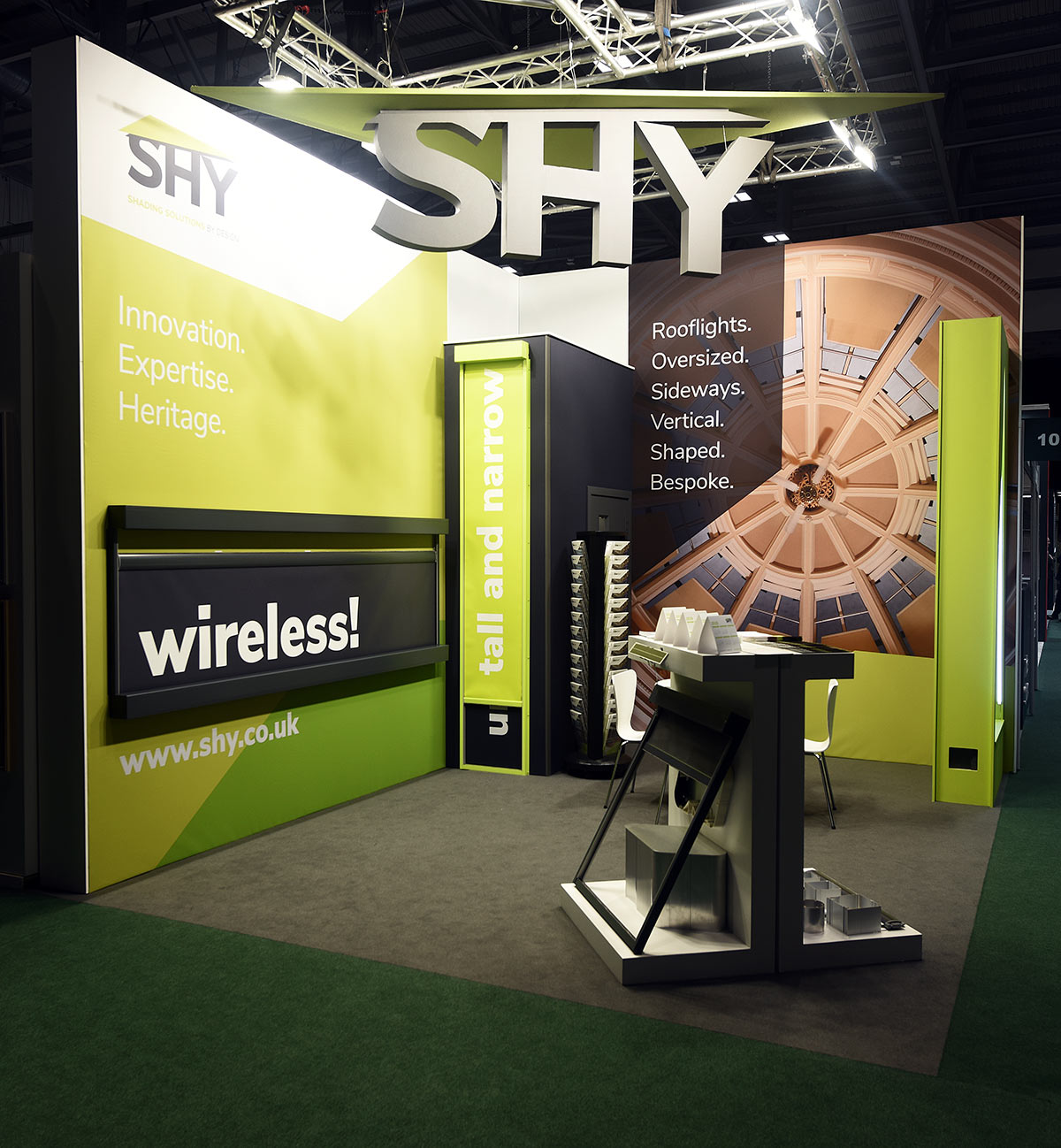 Having recently rebranded, SHY Shading Solutions wanted to ensure its presence at the show was memorable. The team wanted an attention-grabbing stand that used as much of SHY’s product range in the exhibition space as possible.