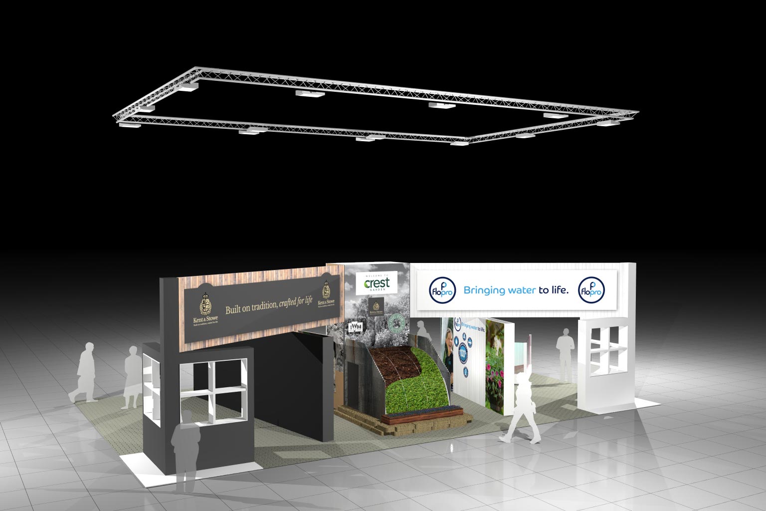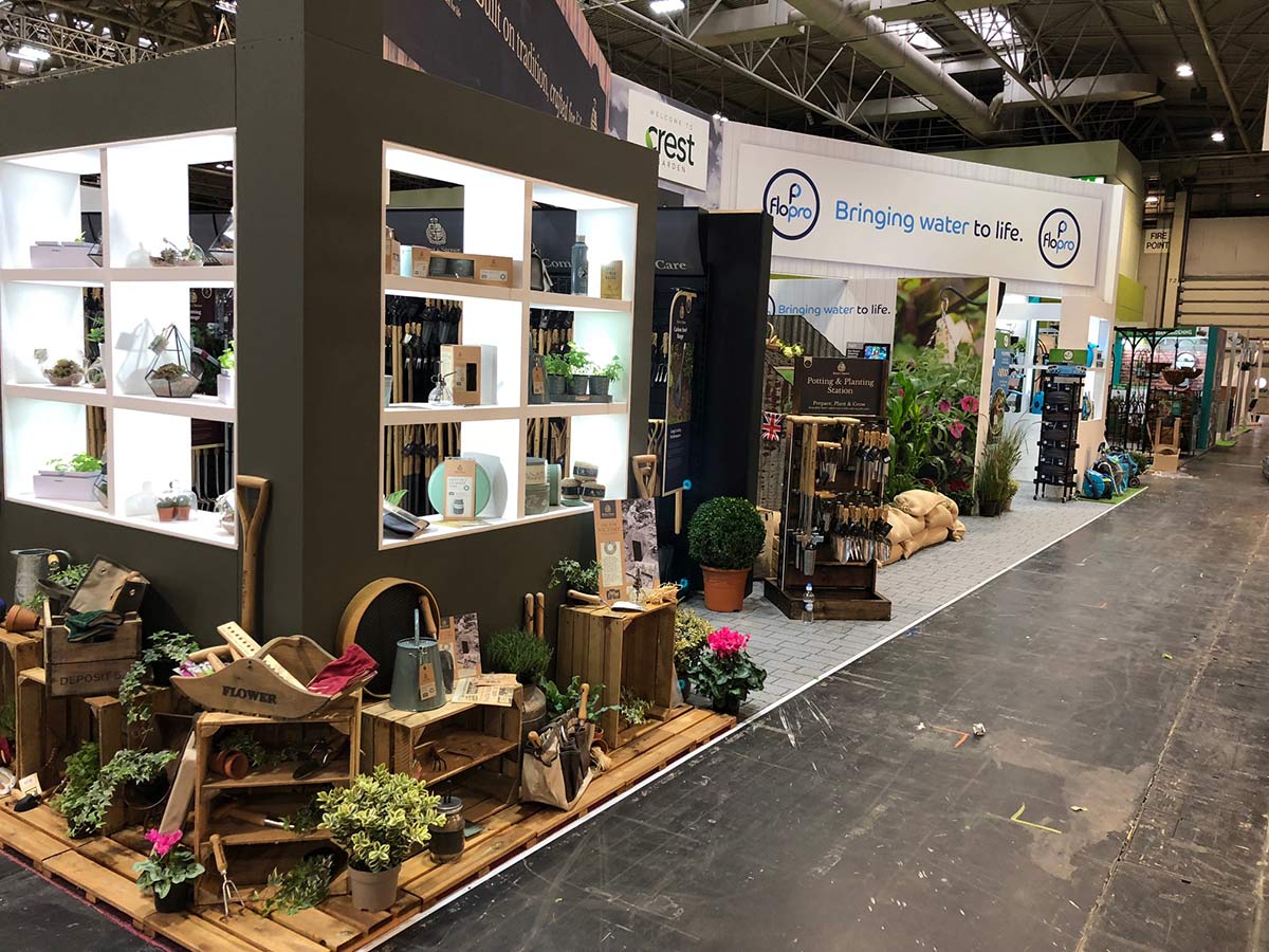 Utilising specialist access platforms and lifting equipment, Icon provided 6-metre high graphic walling and living display areas dressed with products and plants. There was also a hospitality area to seat 50 guests, a variety of audio-visual outposts throughout the stand and a fully functional kitchen.